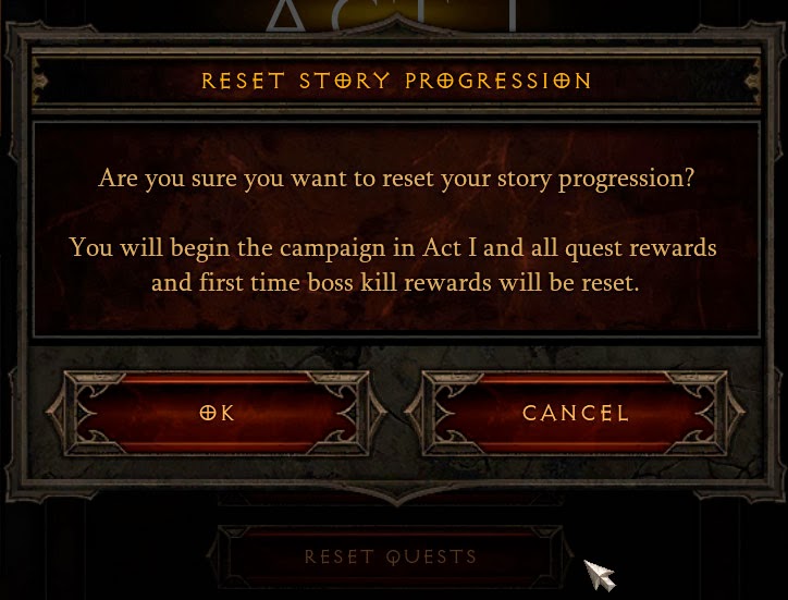 There are also some reproducible bugs with waypoints (like being able to port to some of the ones that are gated behind the quest initiation checkpoint) with the reset option. Also, for any character that has just one missing quest (easy to happen when having played a game in co-op for example where you accepted an invite that was beyond your solo progression), the reset option will not be available for that specific character.