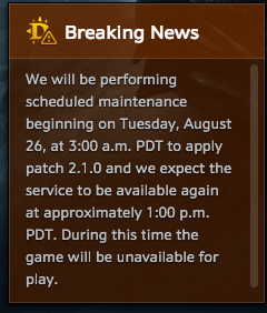 The Breaking News in the Battle.net Desktop App also says the maintenance is for 2.1: