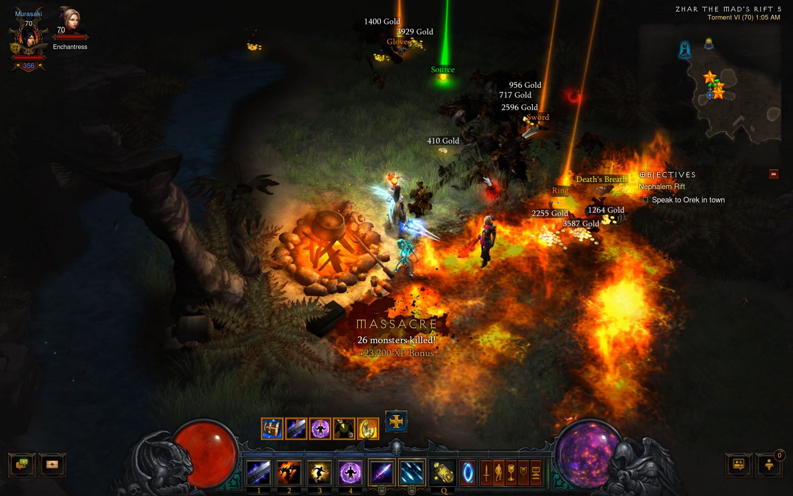 That 2000% temporary buff unsuprisingly showed the fundamental issue as to why I ended up playing each patch less and less; upgrades are far and few unless you are lucky with the RNG.  With this buff in play, almost every destructible and chest, pops one or two legendaries at T6.  Slaying a trash mob will yield one or two as well.  Slaying an elite pack with this buff turns into a major loot pinata (which is what would prefer to see in the game).
