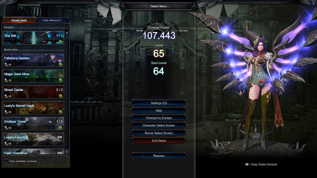 From here on out, it’s easy to see how much of the grind for currency and materials is limited by daily runs without alts (the above is with Platinum service which is from the Frontier pack). Some components (like artifact fragments) are character bound but the labyrinth has no limits on runs. Most of the other mission map objectives are pretty much repetitive in terms of non-random content (same layout and bosses for example). There are currently 3 Mythic difficulty rift dungeons (the last dungeon on each continent) subject to the daily entry limits while the highest tier gear in the game (Epic) drops in a single daily entry epic dungeon which also has a combat power gate (95K-ish minimum).