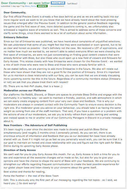 After less than positive reaction from potential early access customers (which included myself), Neowiz posted up an open letter as well as followed up with more details regarding the contents of the Founders packs and premium subscription service.