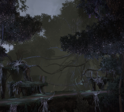 Another important thing is that the lighting of several re-purposed zones will be changed (like how the Island of Dawn was changed from its bright and colorful look to a dreary burnt to a crisp brownish color). One image shows a portion of the Timeless Woods zone with this garish dark lighting now.