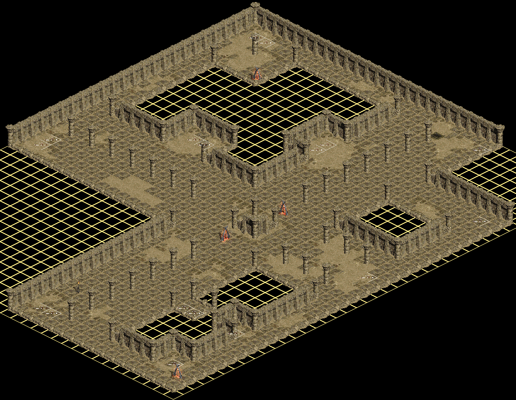 Diablo II itself had no officially designed PvP officially released (players created their own end game meta) but this unreleased arena had several concepts that Blizzard North was toying with (King of the Hill, Highlander, FFA, Capture the Flag).