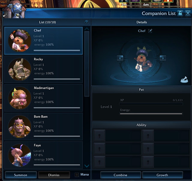 This is pretty much a straight up rant about the piss poor user interface for these new companion/servants not to mention En Masse Entertainment failing to properly preview this update.  This time around, I failed to do my own homework ahead of time due to the lack of time.  I also should not have to jump through hoops like that (downloading other regions version of the game since they tend to get these updates a week or two earlier).