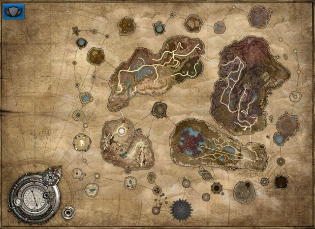 With regards to the various smaller islands surrounding the 4 main zones, getting to them has its own transport system; a hovering platform which you can unlock and use when gaining reputation credits from killing monsters in Exodor.  The central mass is the Verrak Fortress (named Berak Fortress Secret Zone in EU).