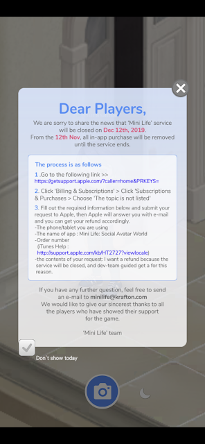 In the “that didn’t even last 6 months” department, Krafton will be terminating the service for Mini Life on December 12th (this social mobile title was launched in September of this year).  The actual in-game announcement was made around the 3 month mark back in November (which meant that even before the 3rd month, their revenue goals were probably way off the mark where they had to have internal discussions in order to make a decision to announce the closure of the service).