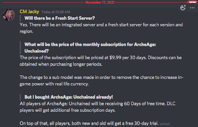 Changing the business model to subscription, should also entail a name change:  ArcheAge Rechained.