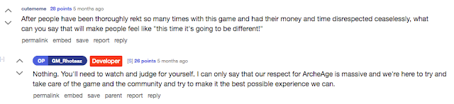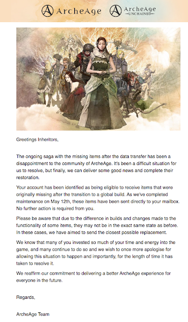 The timing of both of these is now in question because the next batch of complimentary free time (180 days) for ArcheAge Unchained, ends in around 3 weeks (plus several days since there were several free 3-day vouchers that were given out as compensation). Likewise for legacy, those players who decide to return, are more than likely going to want to pickup Patron. I no longer believe this is a coincidence as opposed to the company hoping it will lead to a blip in revenues.
