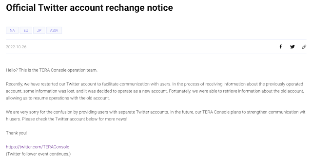 EME (Krafton’s now shuttered publishing subsidiary) had handed over everything back in late 2020 (EME shutdown in November 2020 after the migration of data to Gameforge was completed) including the social media accounts. Up until March 2022, updates were posted on this same Twitter account (see first screenshot). So it sounds like they somehow lost access to it (and weren’t able to reverify to regain access). However, their Facebook page also went silent in March which tells me this is more about a missing social media person that maybe didn’t leave that information when they left.