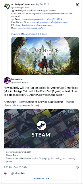 How quickly will the rug be pulled for ArcheAge Chronicles (aka ArcheAge 2)? Will it be Elyon’ed (1 year) or last close to a decade like OG ArcheAge was in the west?