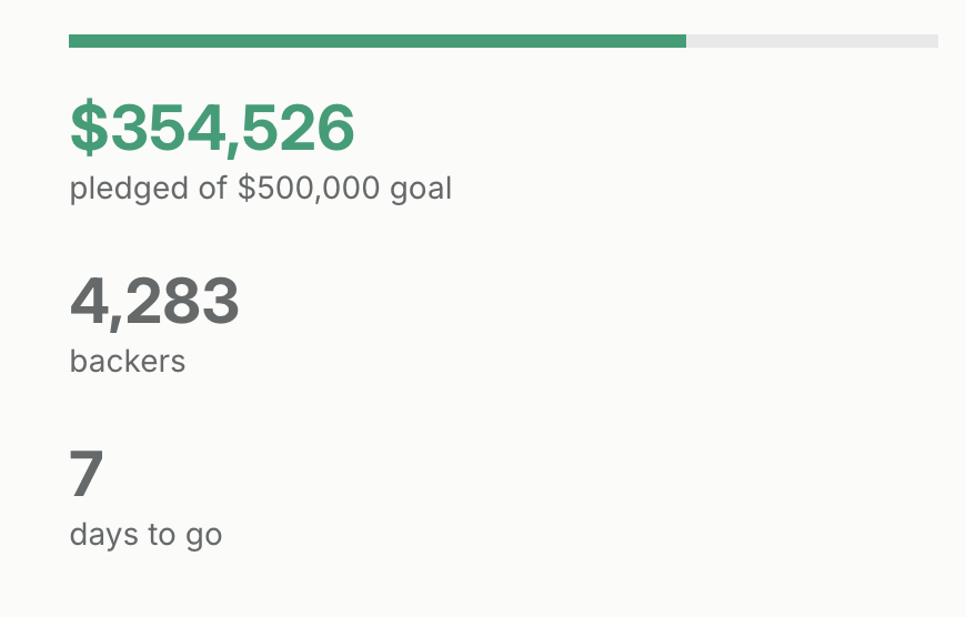 As per their interview, the numbers for this Kickstarter plus interest level on Steam (with the wishlisting), are meant to be used for discussions with potential publishers and investors. Less than 5000 backers is problematic if trying to sell the potential angle.
